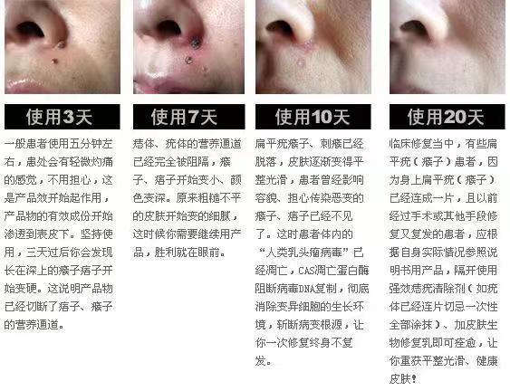 产品说明:】对扁平疣,寻常疣,尖锐湿疣,传染性软疣,跖疣,千日瘊,刺瘊.黑瘊.黑痣.痦子,胎记等一次性根除永不复发.治愈率高 达百分之九十九以上无效买一赔三。