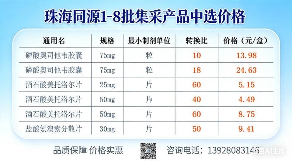 珠海同源1-8批集采产品中选品